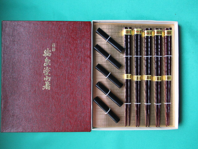 - 輪島塗 箸 5膳セット 箸置付き 未使用品