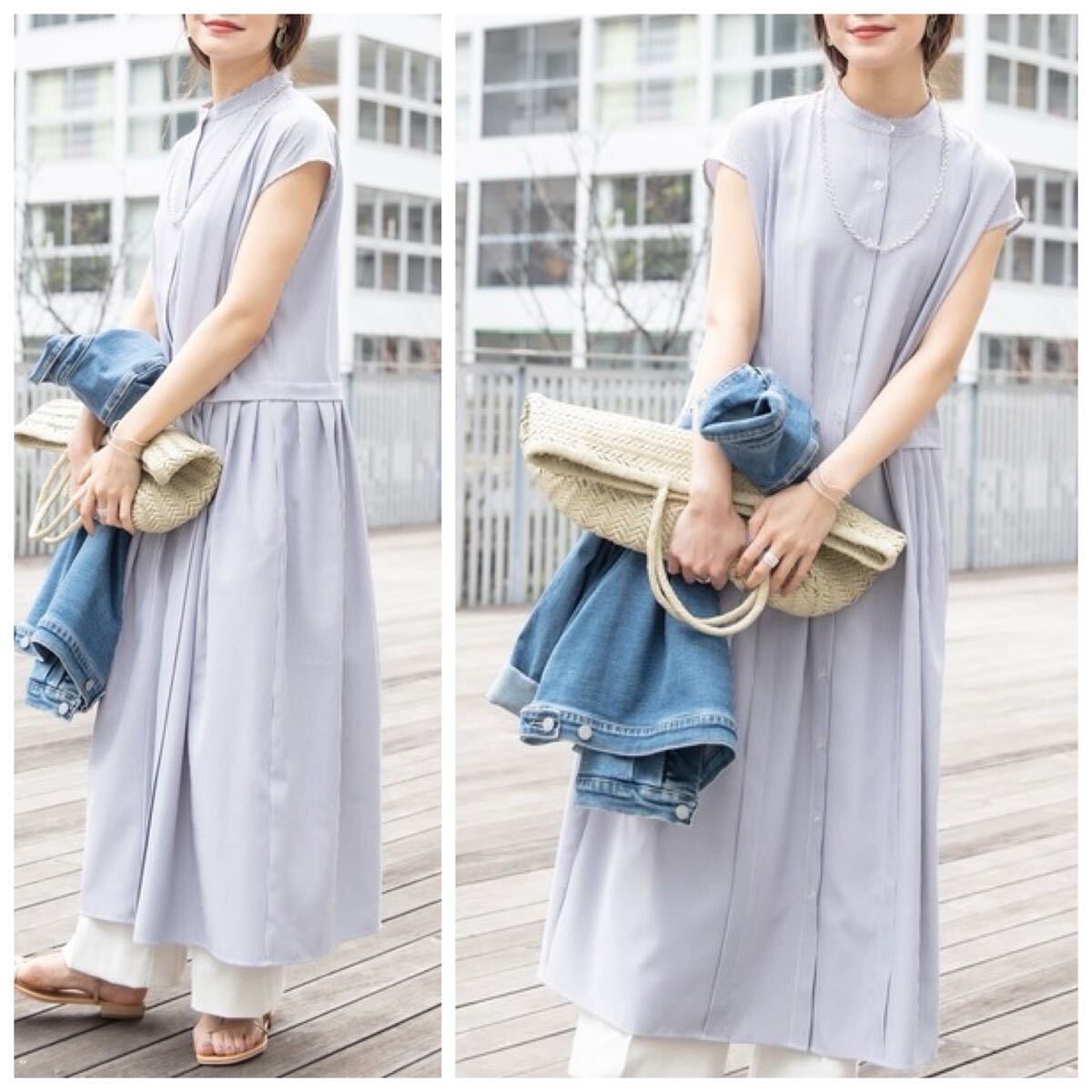 - 新品 SHIPS フレンチスリーブ タック切替 ワンピース 定価11880円