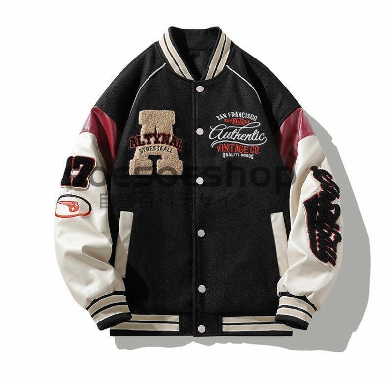 > スタジャン 新入荷 刺繍 上質 野球服 ゆったり メンズ スカジャン ジャケット 紳士 トップス アメカジ サイズ選択可 3色選ぶ/黒/XL