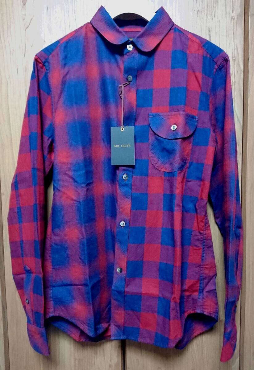 - MR.OLIVEミスターオリーブ★ショールカラークレイジーチェックシャツ★サイズM★未使用新品