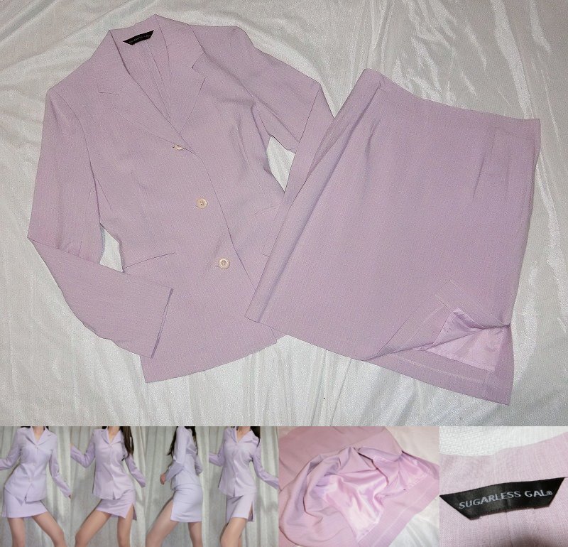 - a45★スリットがセクシーでおすすめです★ストライプ セットアップ 2Pスーツ★ピンク系