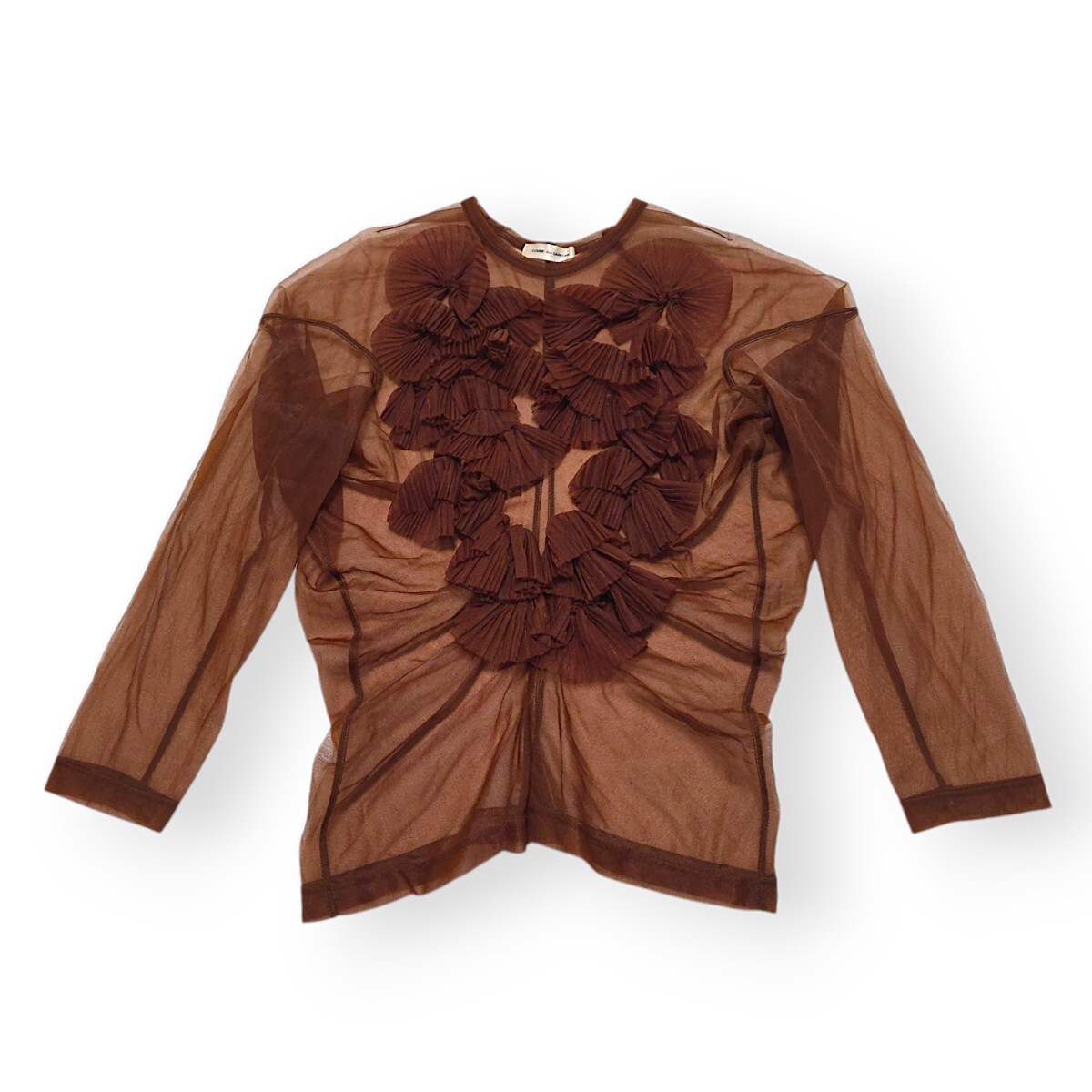 > AW1990 COMME des GARCONS FLORAL RUFFLE MESH SHIRT TOP コムデギャルソン メッシュ シャツ カットソー 90s archive vintage ad1990