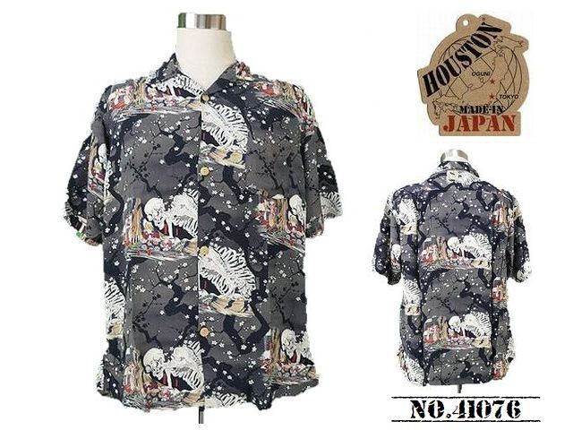 > 【送料無料 29%OFF】HOUSTON ヒューストン アロハシャツ 「歌川国芳 ・相馬の古内裏」・日本製・ NO.41076 BLACK_Lサイズ