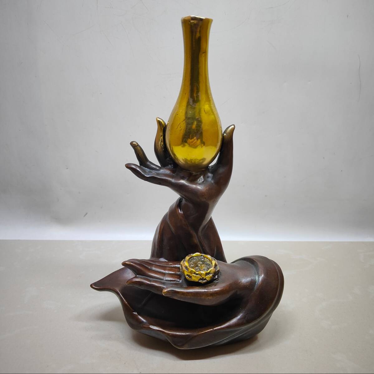 - ▽鴻▽ 黄銅製 塗金 仏手倒流香 置物 賞物 古賞物 中国古玩 中国古美術