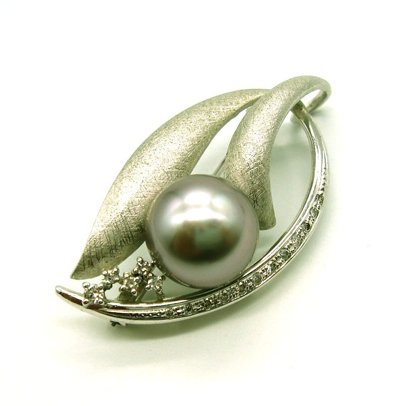 - B178:K18WG 黒蝶真珠 ダイヤ ブローチ ペンダント