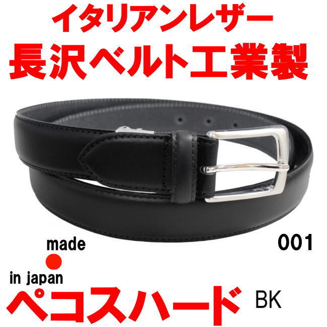 - ブラック 長沢ベルト工業製 イタリアレザー 001 ペコスハード ビジネス ベルト 日本製