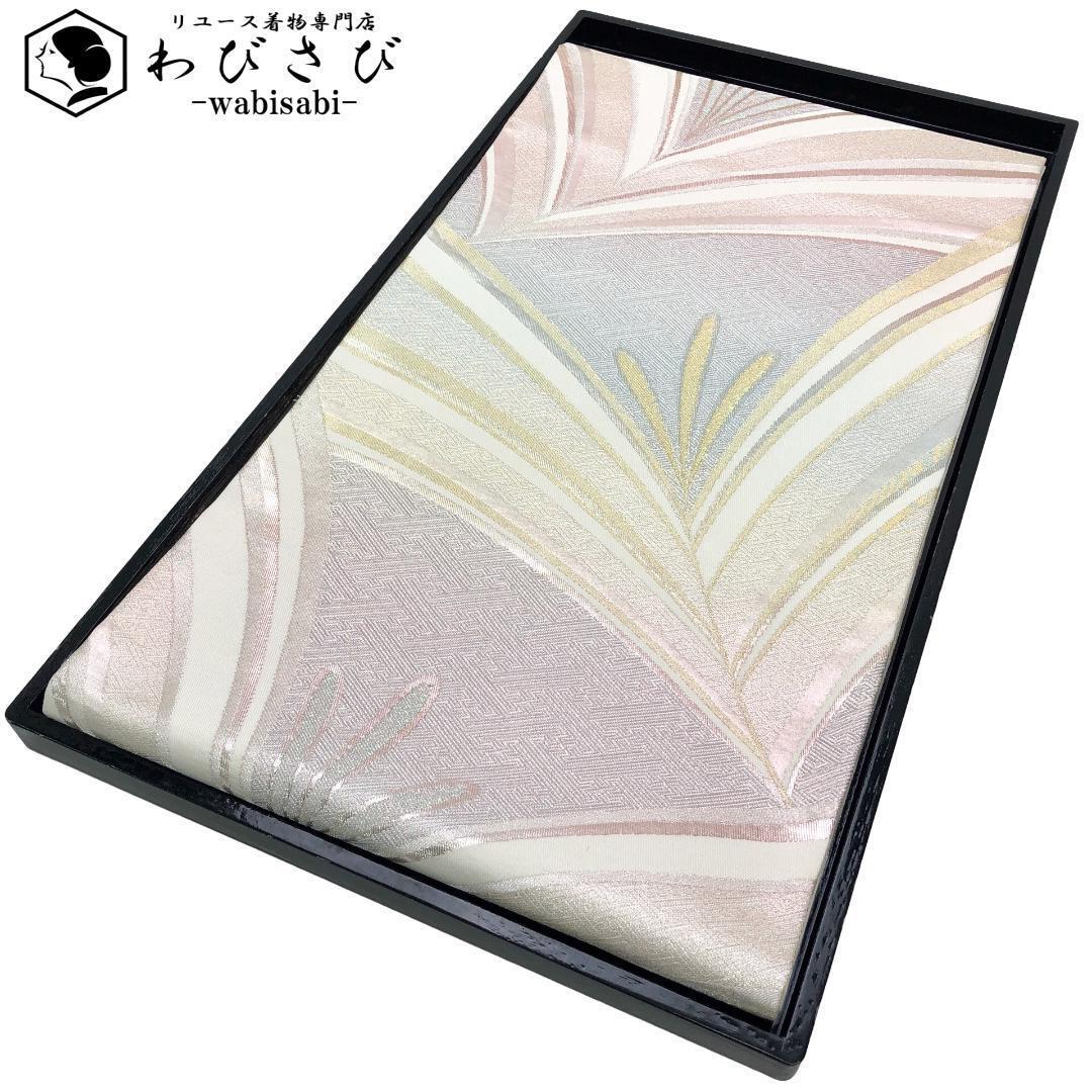 > 袋帯 羽模様 紗綾型地模様 金銀糸 銀色 O-5002 着物 きもの kimono 和服 和装 中古 リサイクル着物 【送料無料】