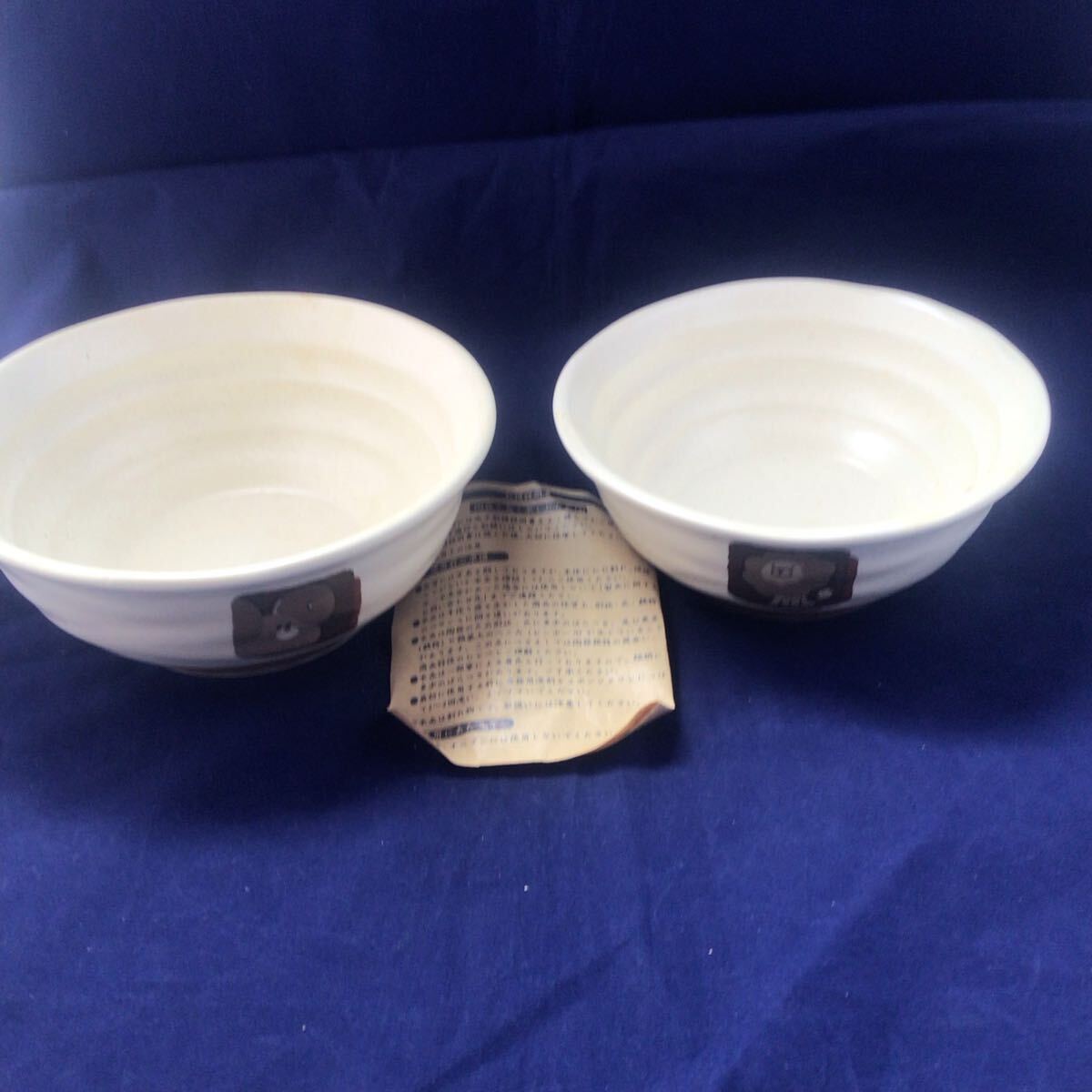 - 土242、動物柄の大小どんぶり 熊、17cmライオン柄15cm