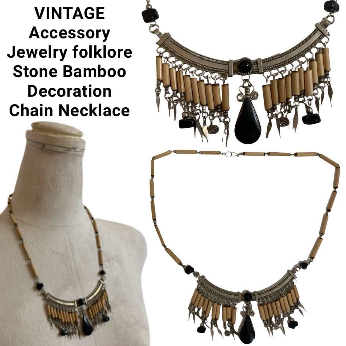 - VINTAGE ヴィンテージ ヴィンテージアクセサリー ジュエリー フォークロア ストーン装飾トップ 竹筒装飾 チェーンネックレス アーカイブ