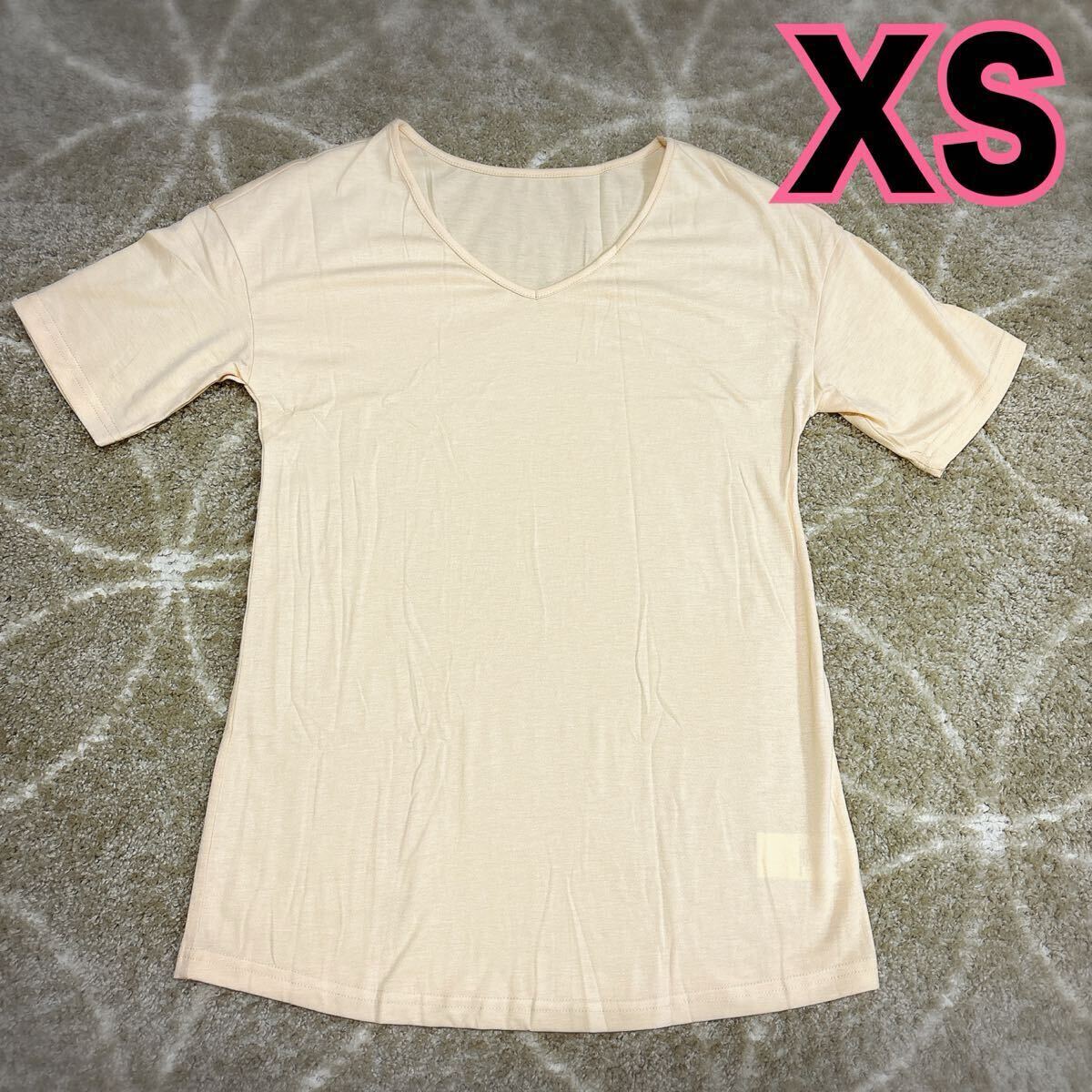 - レディース 半袖 Tシャツ XS Vネック 無地 ベージュ