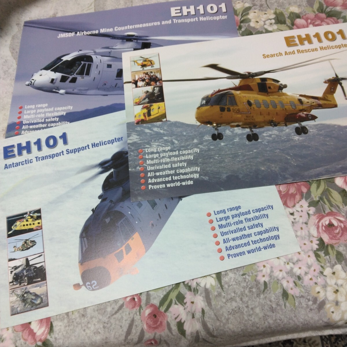 > 送料込み! EH101 ヘリコプター パンフレット 3枚セット 英文(海上自衛隊・川崎重工・回転翼・防衛庁・防衛省・航空・飛行機・川重