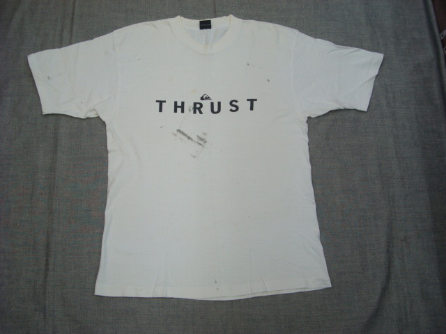 > 古着QUIKSILVER(クイックシルバー)メンズTシャツ(タグなしでサイズ解りませんがMだと思います)ペンキ飛び有(THRUST)日本製