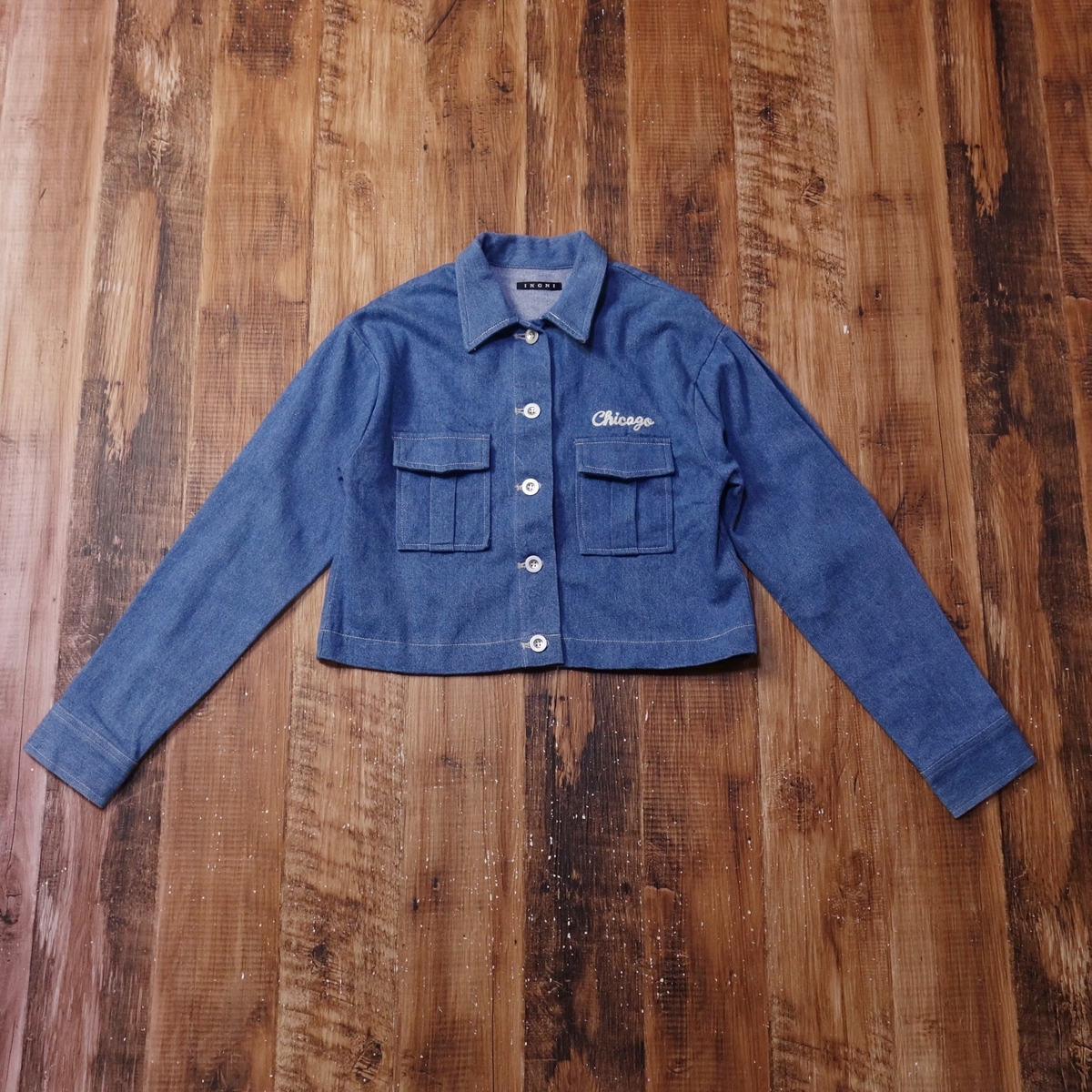 - イング INGNI デニムクロップドジャケット レディース 刺繍 ショート丈 綿100 Mサイズ ブルー FR379
