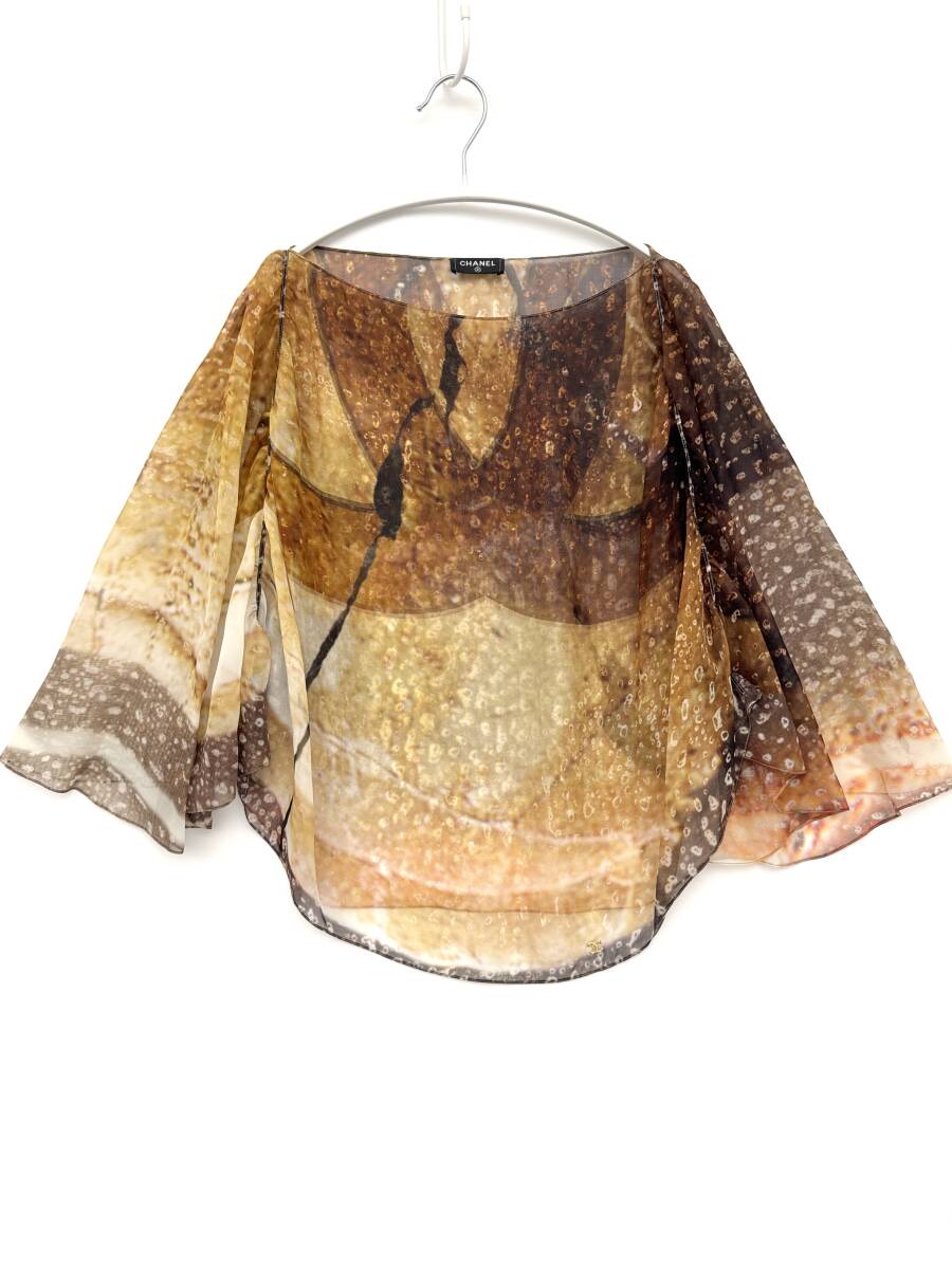 - 7D2717【本物保証】シャネル ポンチョ ケープ ボレロ シャツ デカ ココマーク シルク CHANEL
