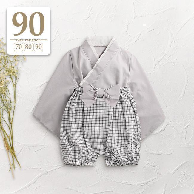 - 新品未使用 90cm グレー〔#BMセパレート袴〕セットアップ 袴ロンパース ベビー 子供 男の子 着物 和服 お食い初め 初節句 こどもの日 端午