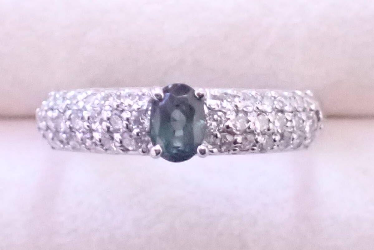 - アレキサンドライト 指輪 0.41ct ダイヤ0.43ct 10.5号