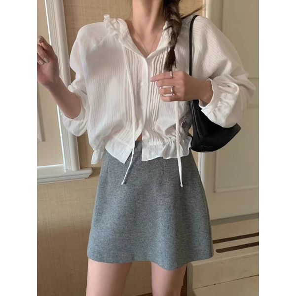 - レディース トップス ブラウス パフスリーブ ショート丈 フード付き FY92