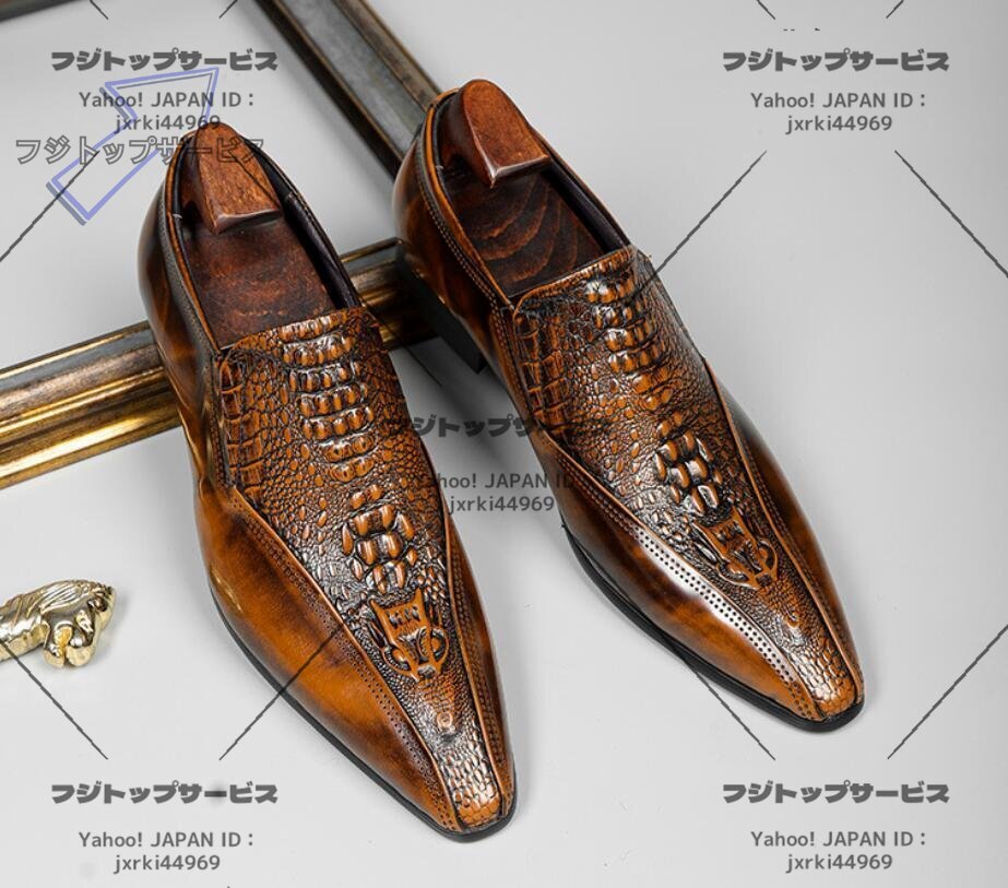 - 人気品本革 ビジネスシューズ メンズ 職人手塗り上げ 鰐柄 ローファー レザーシューズ スリッポン 光沢 紳士靴 革靴 ブラウン 24~27.5cm