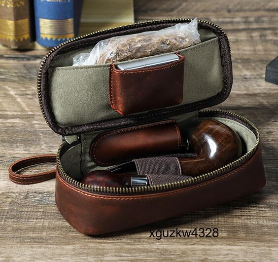 > マルチケース スモーキング レザー ポーチ 本革喫煙具小物入れ ブラウン パイプポーチ2本用牛革 喫煙具 タバコ おしゃれ かっこいい/XS125