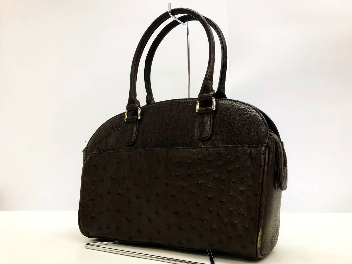- オーストリッチ バッグ ハンドバッグ ダチョウ ブラウン 茶系 レディースバッグ 女性用 縦21.5㎝×横28㎝×マチ7.5㎝