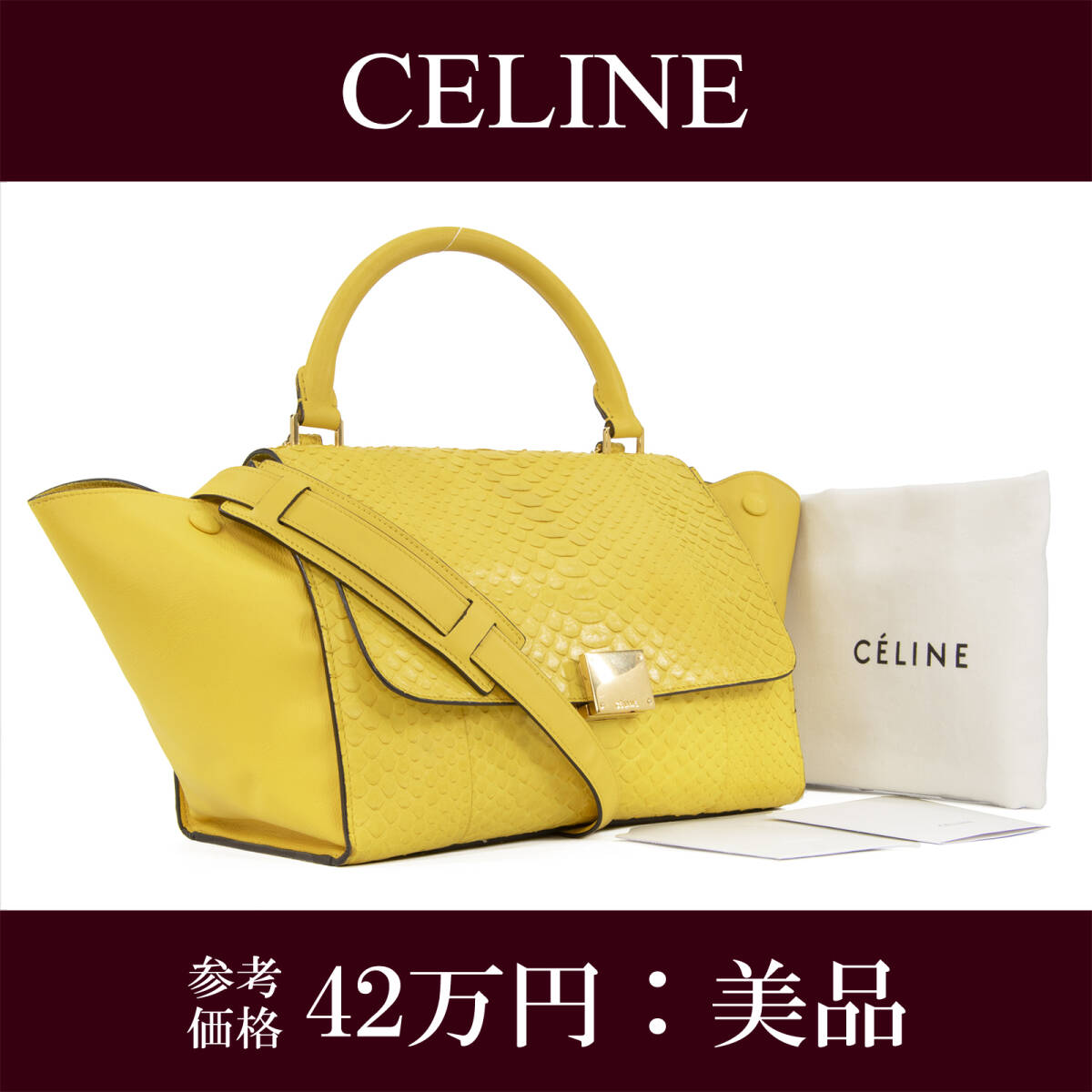 - 本物 送料無料 セリーヌ 2WAYショルダーバッグ ハンドバッグ レディース パイソン トラペーズ イエロー 最高級 肩掛け ロゴ 鞄 バック E386