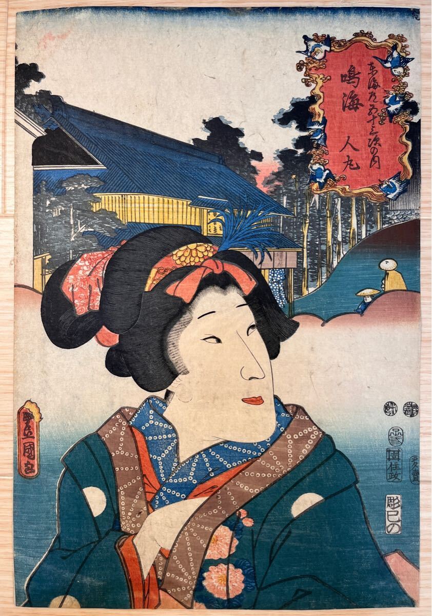 - 【真作】役者見立東海道五十三次の内 鳴海 人丸 三代豊国 歌川国貞 浮世絵 木版画 美人画 中国唐物唐本 古筆古文書和本 役者絵 #002