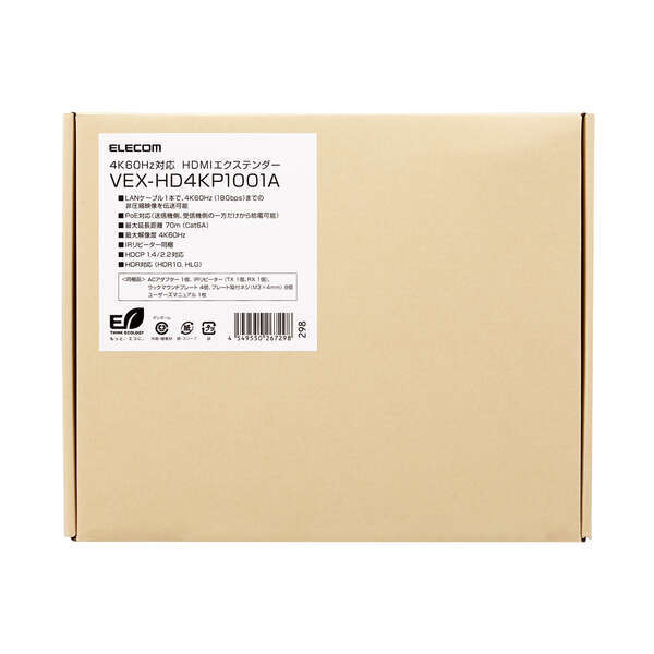 - HDMIエクステンダー HDMI信号を1本のLANケーブルで最大70mの延長可能 4K60Hzの高精細なHDMI映像信号の長距離伝送が可能: VEX-HD4KP1001A