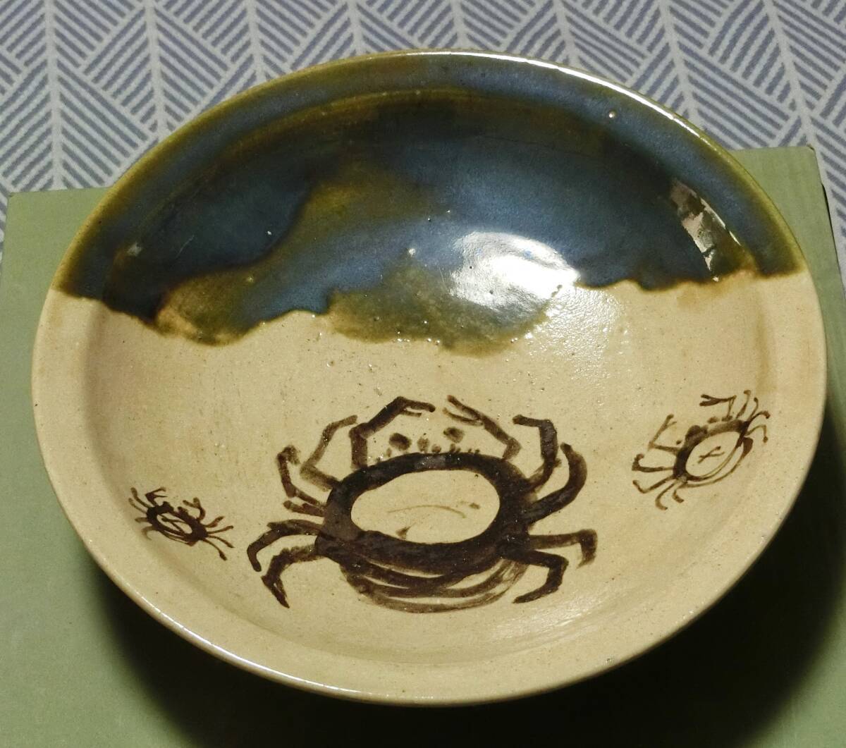 - 北大路魯山人 織部 蟹親子 大絵皿 32cm 黒田陶々庵極め 共箱 本物返品OK 250501−11