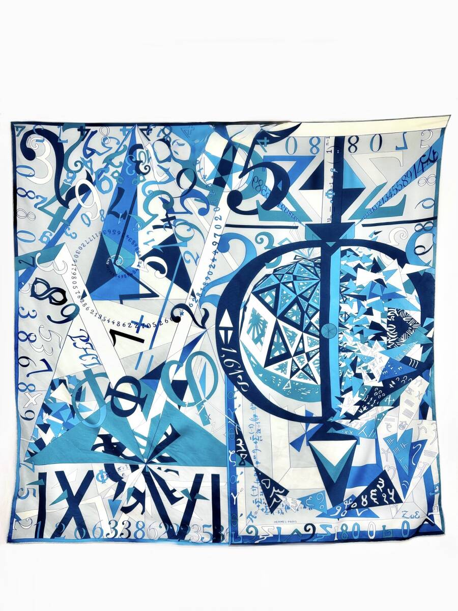 - 7D2714【本物保証】エルメス カレ 100 スカーフ ノンブルドール Le Nombre D’or コットン シルク ロゴ HERMES
