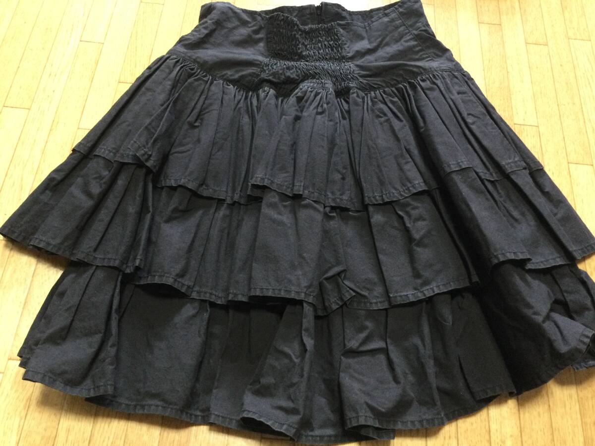 > BENETTON ベネトン フレアー三段 スカート 黒 150cm USED