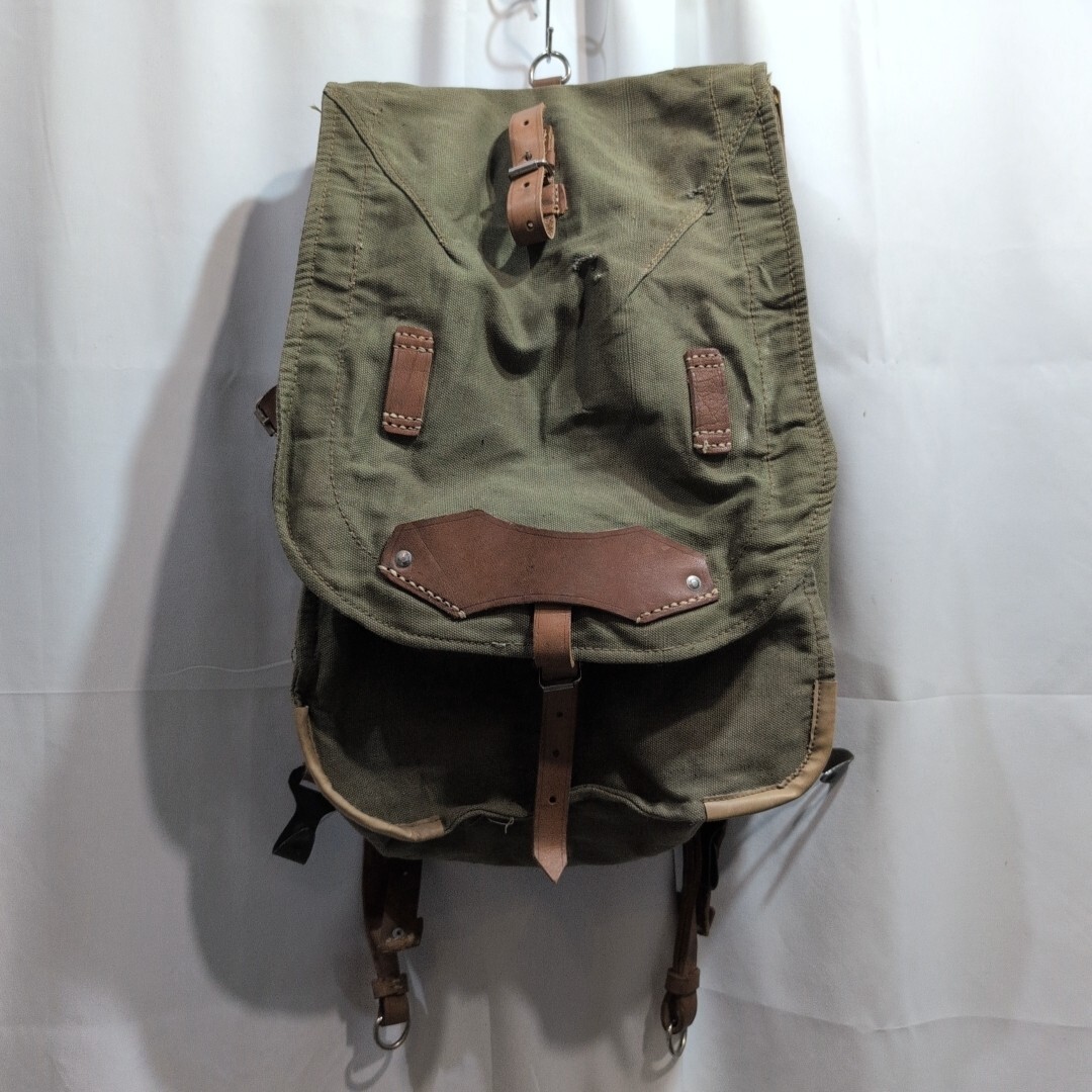 > 70s 実物 ルーマニア軍 キャンバス リュック バックパック ミリタリー レザー 鞄 かばん オリーブ カーキ ユーロ ヨーロッパ F