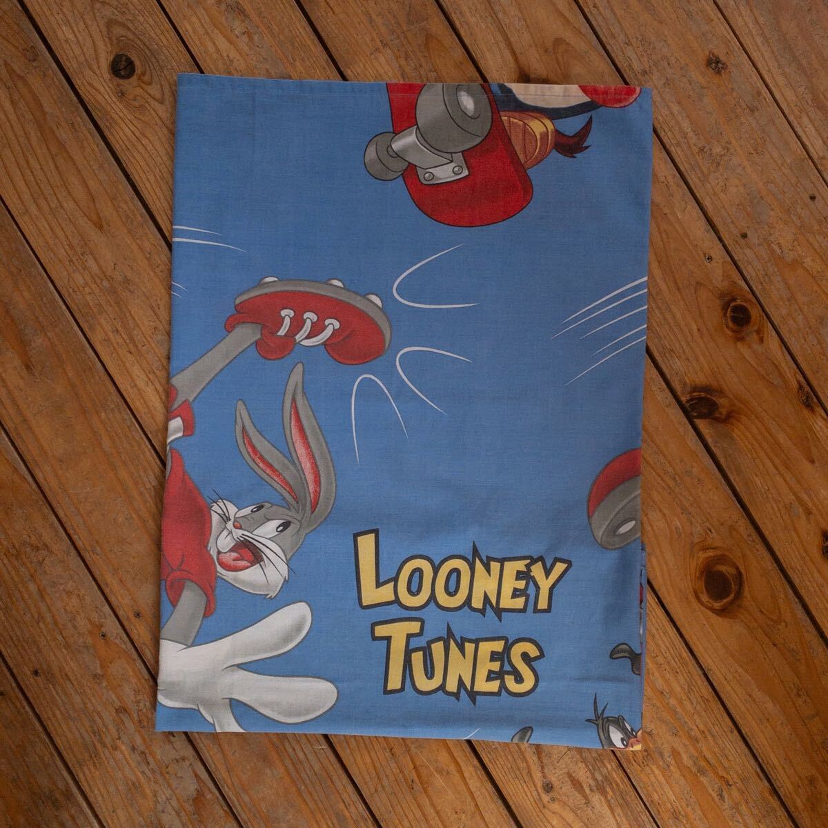 > USA ヴィンテージ ピローケース 枕カバー ルーニーテューンズ リメイク生地 バックスバニー 袋状両面プリント アメリカ仕入 B2600