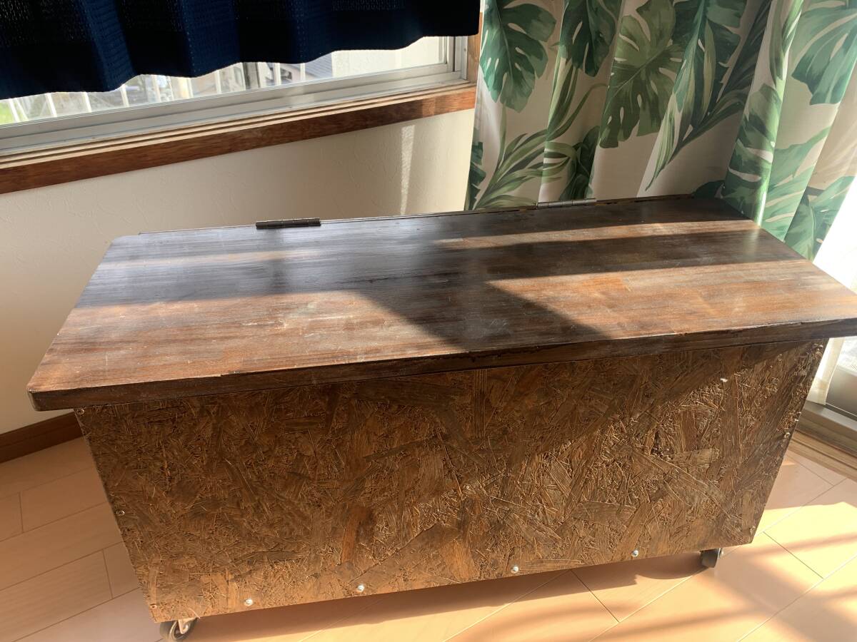- アジアンカフェから引き上げ 収納付き椅子 タイヤ付き 食材入れなどに!福岡県