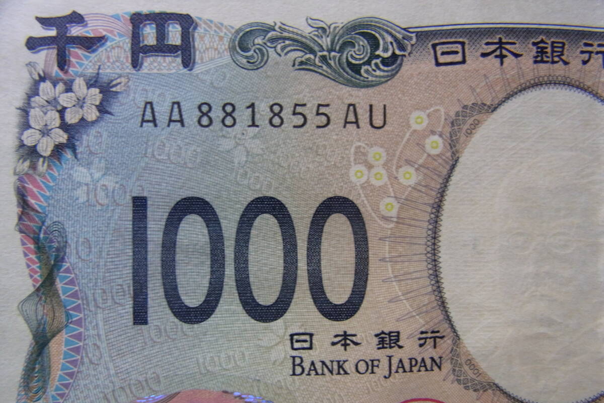 - 【新紙幣】AA−AU券 北里柴三郎 1000円 新札1枚 AA881855AU 若干の折り目あります