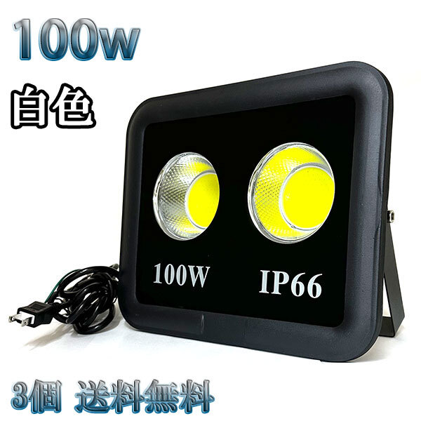 > 100W LED投光器 COB 照明 10000lm 1000w相当 100V 3mコード 倉庫 車庫 工場 看板 白色 【3個set 送料無料】
