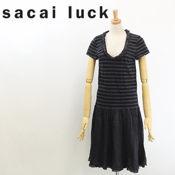 - ◆sacai luck サカイ ラック ボーダー柄 コットン 切替 ドッキング ワンピース チャコール×ブラック 3