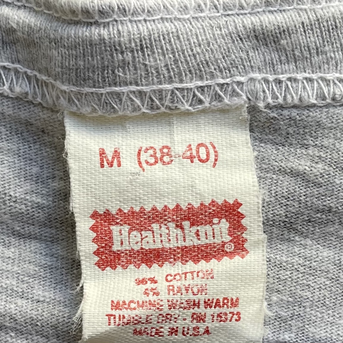- USA製 80s ヘルスニット ヘンリーネック Tシャツ ヘザーグレー 猫目ボタン ヴィンテージ レア Healthknit アメリカ製 MADE IN USA ④