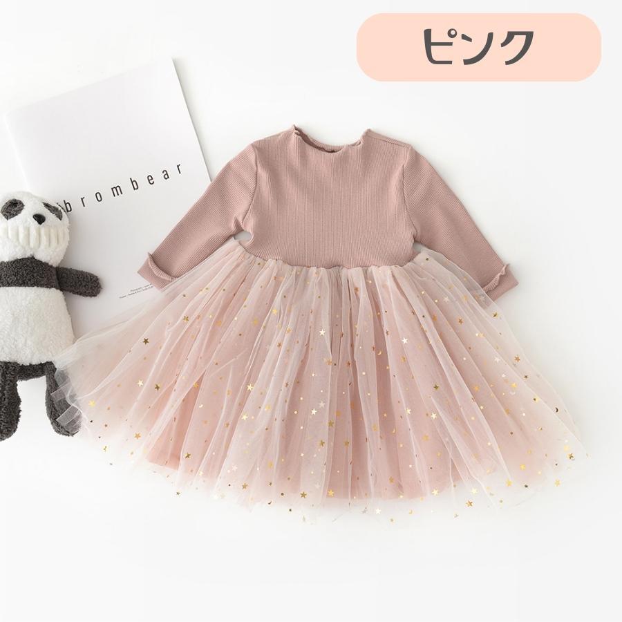 - 新品 送料無料 ピンク 100cm ワンピース 子供服 フリル 春 秋 チュール チュチュ かわいい 星柄 ラメ 女の子 キッズ ベビー服