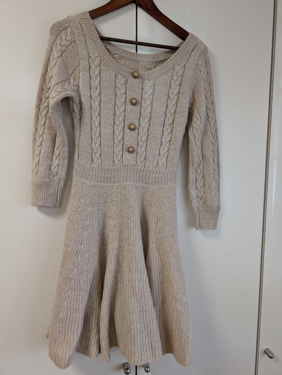 - 美品 アプワイザーリッシェ ニットワンピ 金ボタン サイズ2 ベージュ系 ミニワンピ