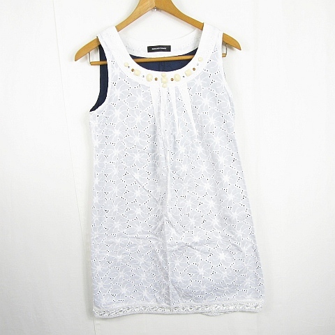 - クイーンズコート QUEENS COURT ノースリーブ ワンピース 膝丈 綿 2 ホワイト レース ビジュー kz11496 レディース