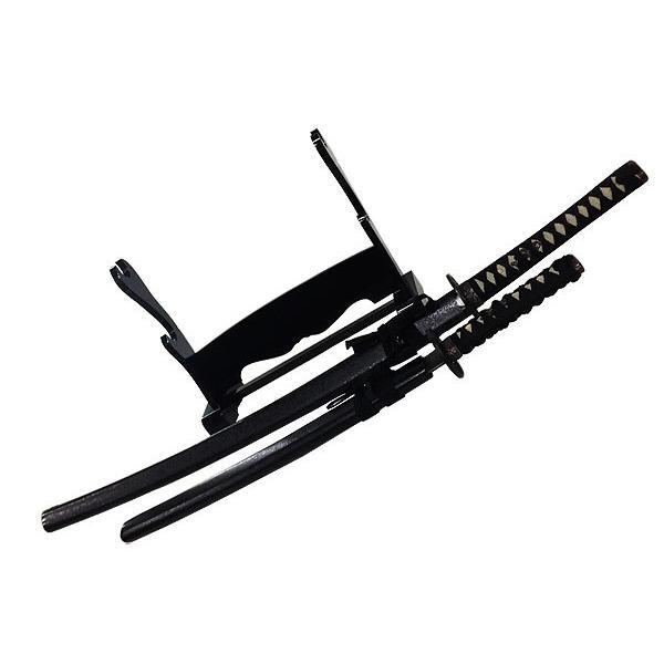 - 美術刀剣 模造刀 日本製 日本刀 黒石目 3点セット(大刀・小刀・刀台2本掛け)