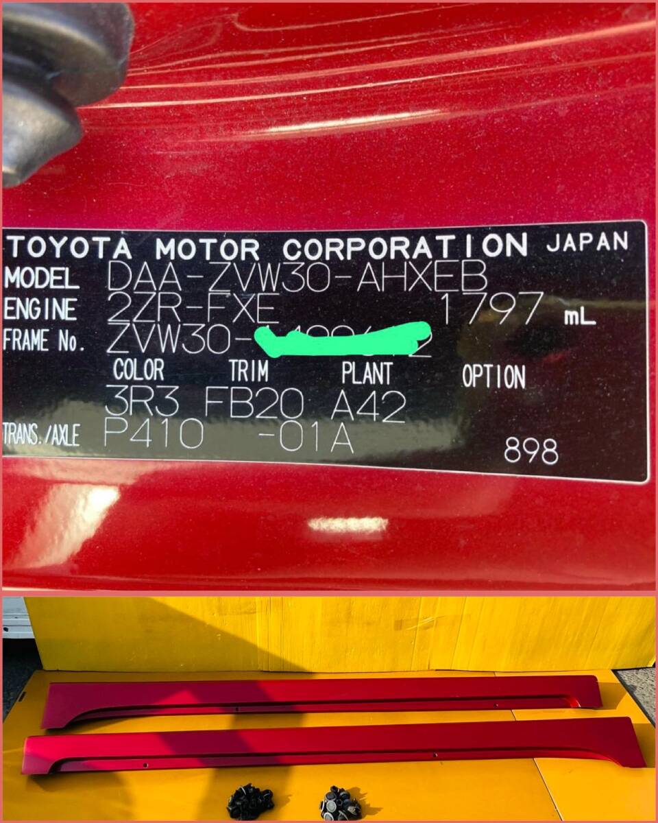 > ZT-3156] 純正トヨタ プリウス ZVW30 H21年 サイドドアパネル/ドアスカート 色:レッド 3R3