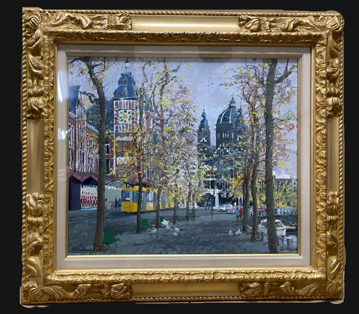 - TM/【真作】小田切訓「運河沿いの並木」油彩 F10号 ガラス額装 0503-1