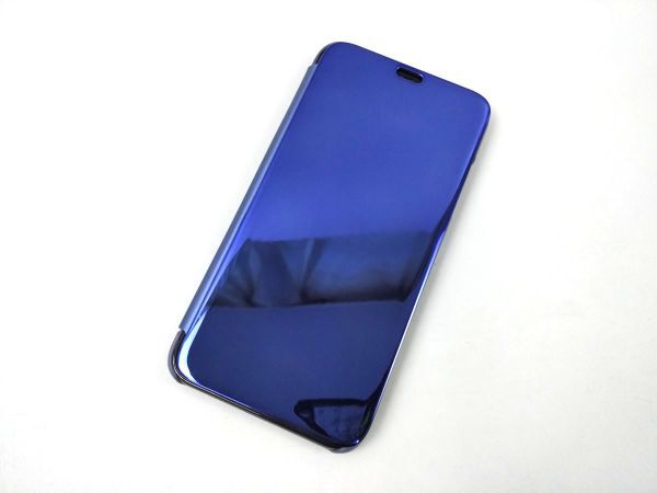 > iPhone 11 Pro Max用 鏡面 手帳型ミラーフリップケース カバー 半透明 ブルー