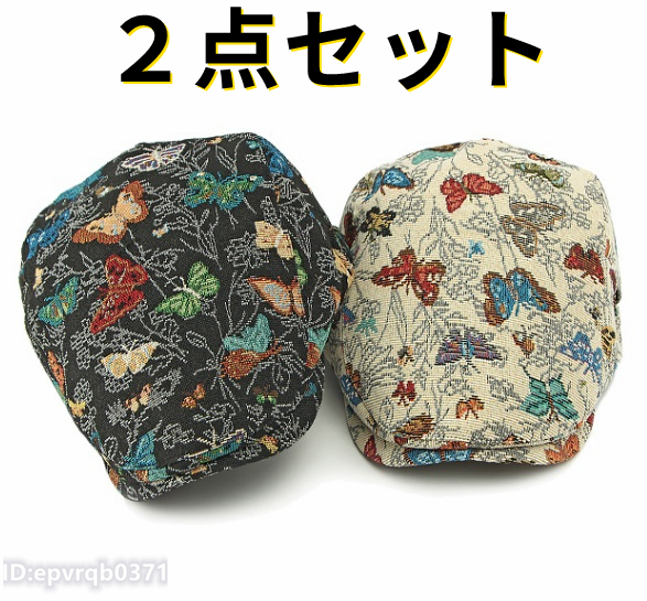 > 2点セット ハンチング 新入荷 キャスケット メンズキャップ 柄物 紳士 帽子 ゴルフキャップ 日よけ アウトドア フリーサイズ 黒/カーキ