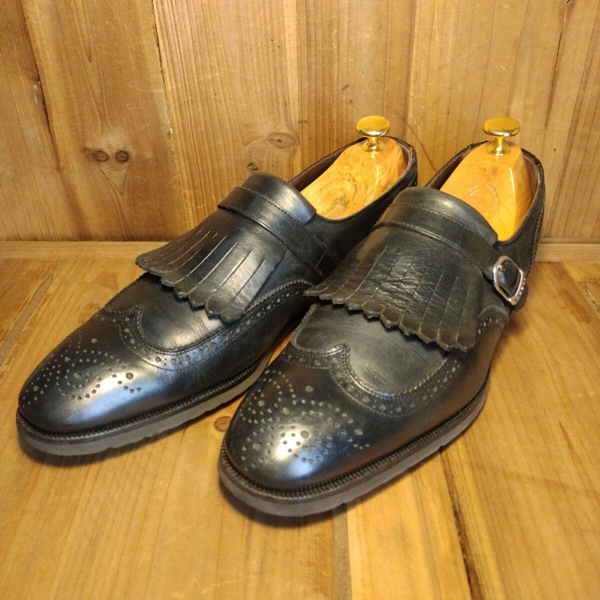 > 貴重 入手困難 日本製 正規品 リーガル REGAL GEOX ウィングチップ フリンジ レザーシューズ 25.5cm ビジネスシューズ 革靴 ブラック 黒