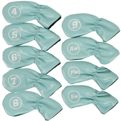 - anddat アイアン ヘッドカバー ウェッジカバー PUレザー 9枚セット 刺繍 ゴルフクラブ メンズ 男性 アクセサ