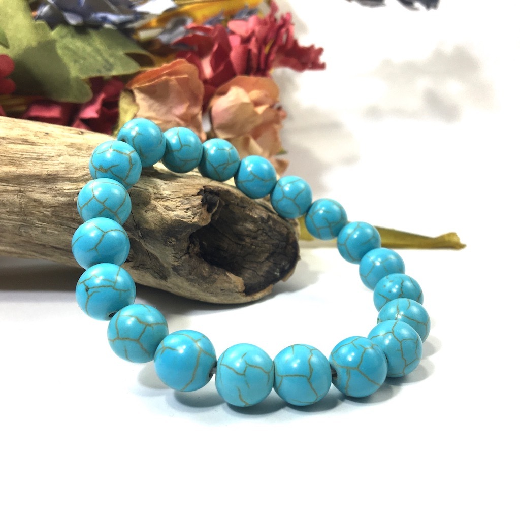 - ターコイズ パワーストーン ブレスレット 10mm シンプル 開運 浄化 数珠ブレス メンズ・レディース 男性 #2 ☆