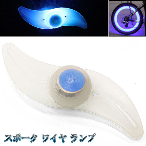 > 自転車 ホイール サイクル スポーク LED ライト ワイヤ 風車型 柳形状 アクセサリー アウトドア 夜間 安全 ブルー発光 送料無料