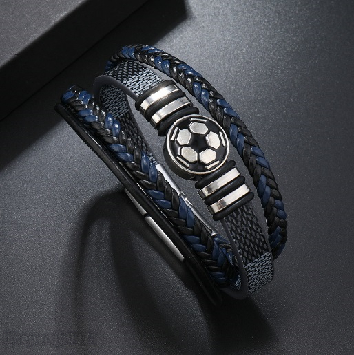 > レザーバングル 新入荷 メンズ ブレスレット サッカー チタンステンレス 紳士 アクセサリー 総長21センチ 3色選ぶ/青